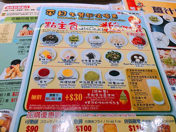 平日午餐超值優惠,點主食$149以上送附餐20選一,有小菜/甜點/飲料供選擇多達20樣