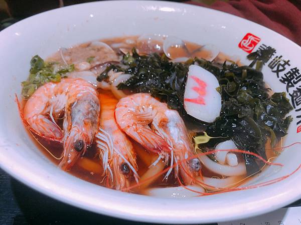 湯頭的蝦味很濃,雖然有三隻蝦,感覺不止這三隻熬出的味道,蝦味也太濃了吧⋯⋯,蝦子很新鮮也很大隻,