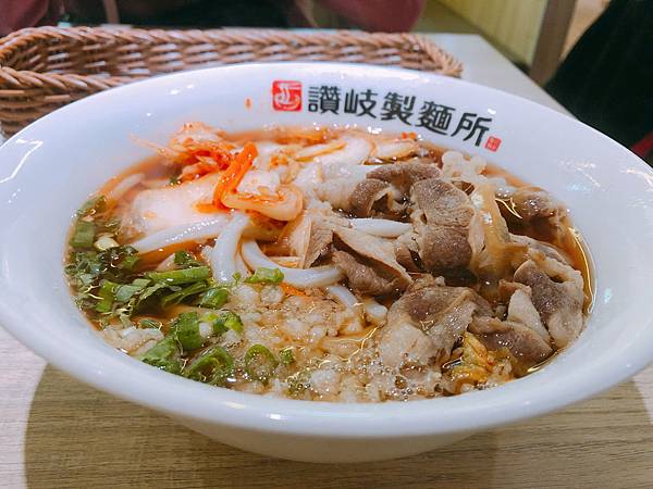 再來,是我的「泡菜牛肉烏龍麵$189」,裡面有泡菜、牛肉、洋蔥、青蔥,還有烏龍麵,湯頭因為泡菜的關係,變得更多層次,