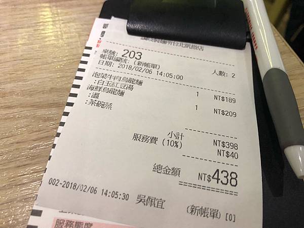 結帳有收10%服務費喔!此次總共消費$438