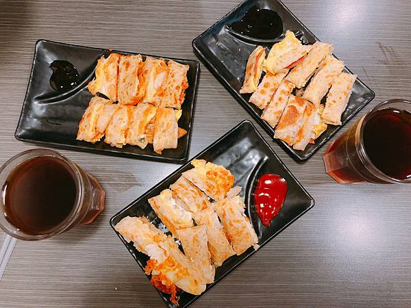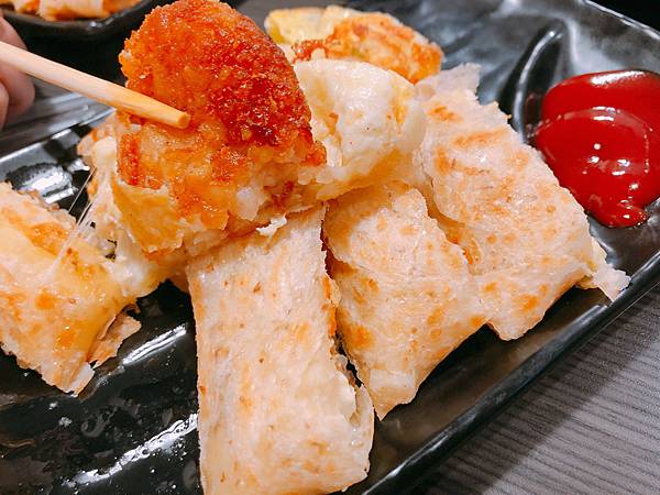 搭配番茄醬酸酸的可以解膩喔,畢竟是又炸又奶的蛋餅