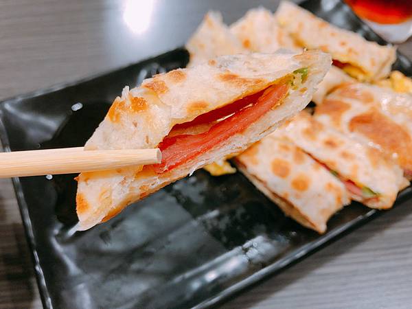 蛋餅外皮煎的焦焦脆脆,夾上一片火腿,每一口都很平均的可以吃到火腿