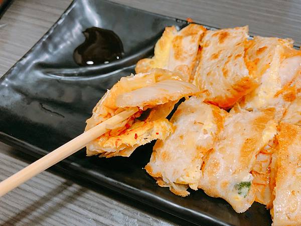 這是我第一次吃泡菜蛋餅,泡菜比較屬於韓式口味