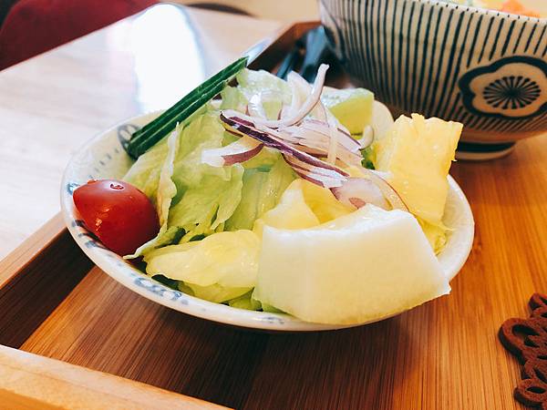 這碗沙拉不只美生菜多還有新鮮水果做搭配