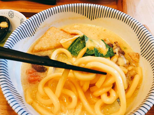 烏龍麵的湯頭是雞骨和蔬菜熬煮的