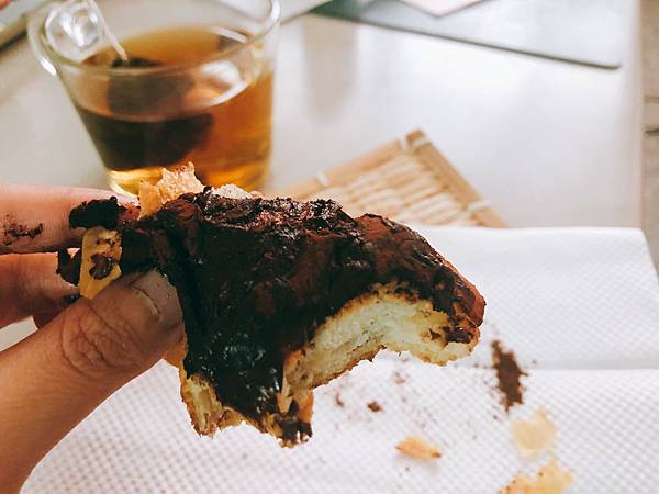 麵包體是可頌的麵包,搭配上面的甘納許醬,非常對味,