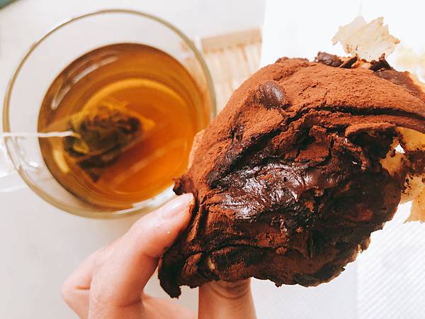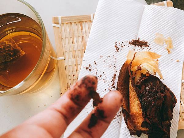 上面有滿滿的可可粉,自己挑戰不要用髒,還是吃得滿手髒髒,