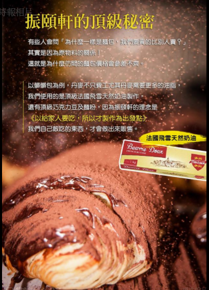 振頤軒使用法國奶油製作,一個$70可以接受,畢竟人造的植物油非常不好,