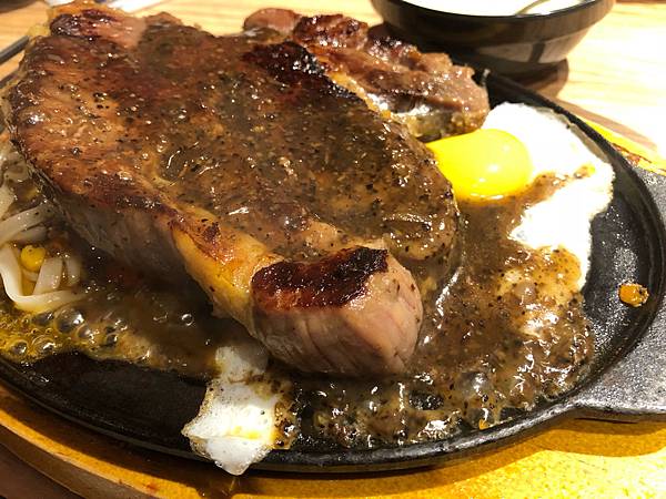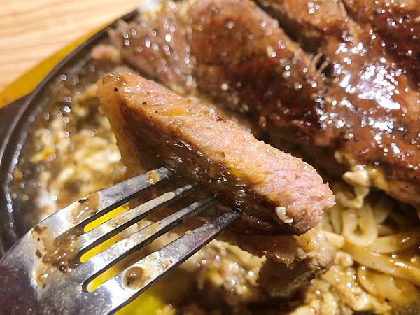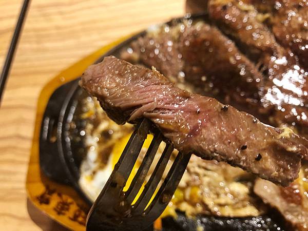 從側面看肉是厚實的,並非夜市薄薄一片的牛排,