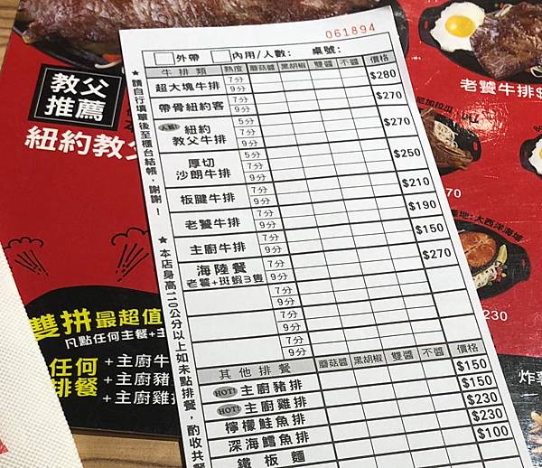 完整菜單會給兩份,一份是目錄,一份是紙本單可以畫餐,