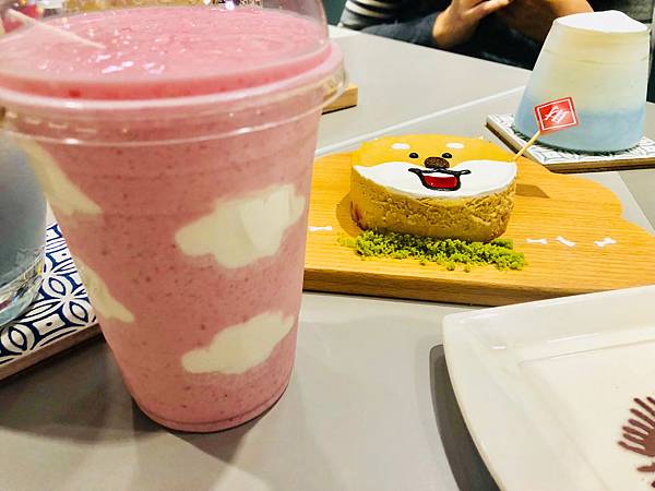 摩卡搭配乳酪的味道比較少見,中間有酸酸的野莓果醬,還有QQ的麻糬,好拍好看但吃不完,味道好奇特阿,但是我是來看柴柴的,所以無所謂!