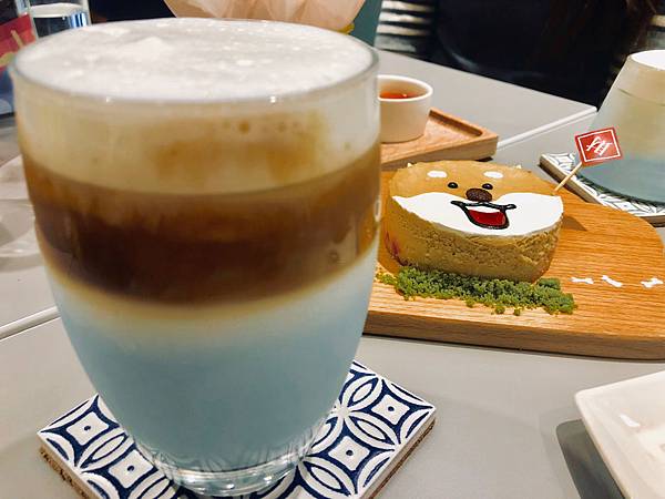 法式香草歐蕾加上了咖啡,造成天空漸層的感覺,多了一股咖啡香,藍色的部份我們猜是用蝶豆花製成,因為有股特殊的味道,