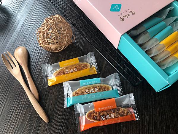 摩那卡在一般市面上常見的喜餅禮盒裡不陌生,但是不是容易記得的名字,色彩也是馬卡龍色系,摩那卡有四種口味,包裝也有四種顏色,色彩很繽紛