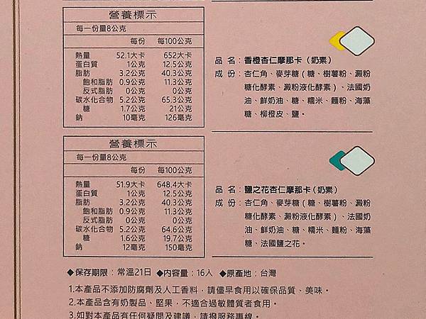 一個塔就有一個包裝,方便攜帶,保存期限有三週,因為不添加防腐劑,所以期限不長,而且塔皮放越久會越不酥脆,因為就是無添加。