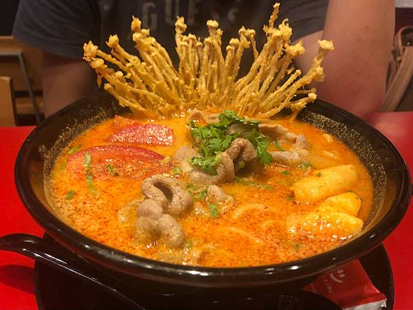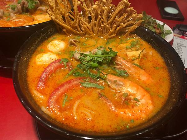 湯頭以泰國南薑、香茅、檸檬、番茄..等多樣香料熬煮,