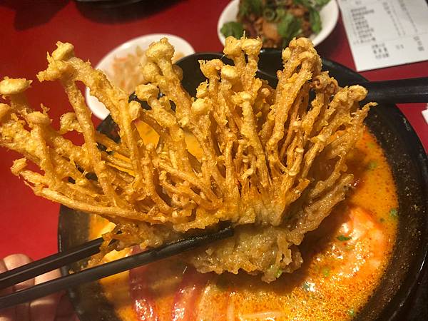 炸金針菇真的很好吃,由其剛泡下在湯汁裡,還沒有全部變成軟趴趴的時候,最美味了