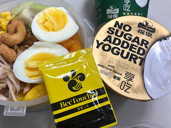 登登登登!!最重要的事要搭配我們的福樂無添加的優格,及蜜蜂工坊的蜂蜜醬料包