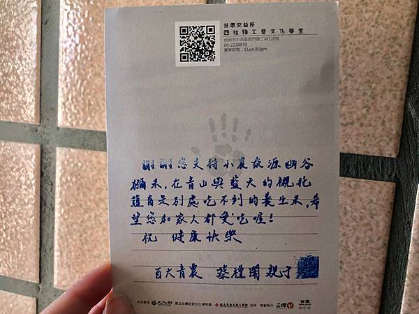 還有附上一封有溫度的信,百大青農的印章信,有溫度,有能量的米,和大家分享一下