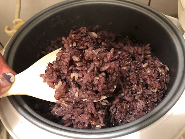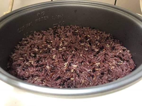 煮出來的飯,呈現紫米的顏色,每顆白米都被化妝了!!!