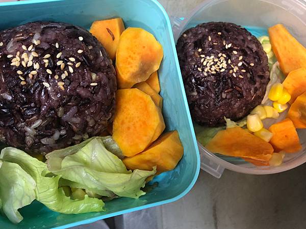 因為飯準備太多,趕快幫家人帶便當,做了養生的飯糰便當,搭配地瓜🍠,美生菜,這樣看起來更加可口