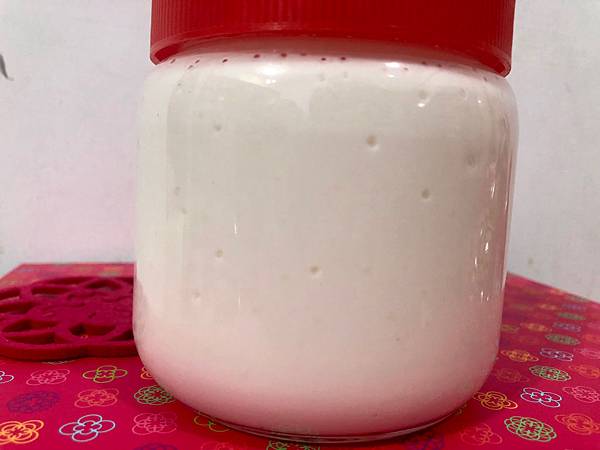 22小時候,放置的優格,表面有些許氣孔, 有一點氣泡的感覺,是好菌在深呼吸,