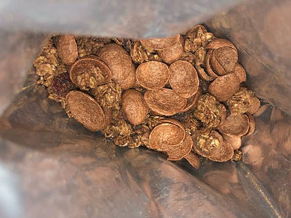 打開之後,有密封條,呈現這樣,非常濃郁的巧克力香,忍不住直接吃了