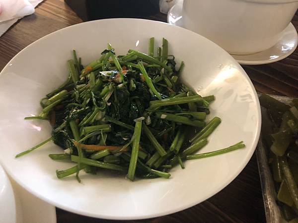 老闆今天炒空心菜,我喜歡空心菜,很清脆,空心菜好吃,但我也不清楚下次會不會是空心菜,可以詢問老闆喔!