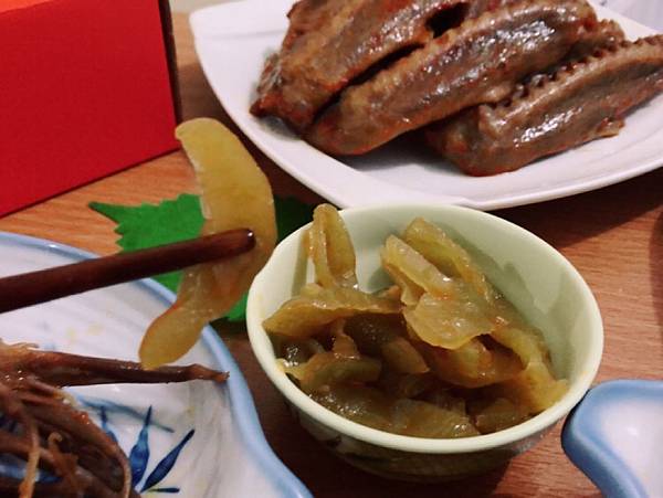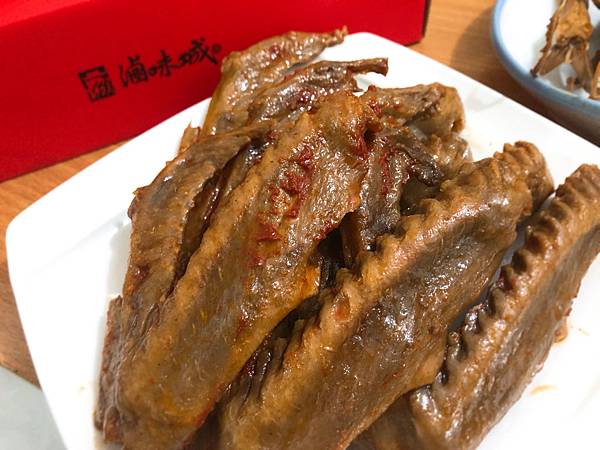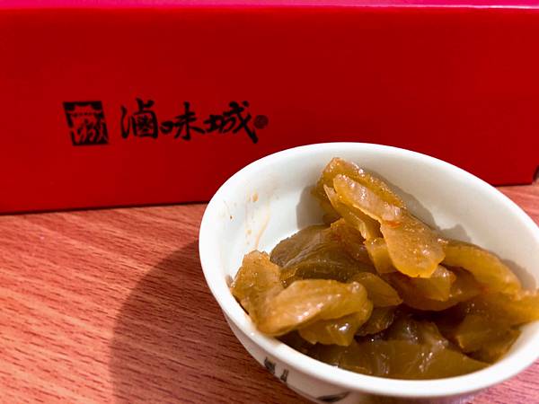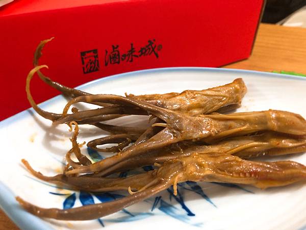 也是有著淡淡的中藥香,顏色上沒有鴨舌頭的這麼深,吃起來滿軟的,但不是像雞腳凍那樣的軟