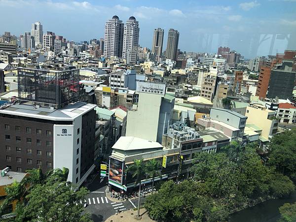 我們最後選坐窗邊,景色很好,今天天氣很好,看得很清楚,坐窗邊眺望新竹市,這裡往下看有河流,還有人再穿韓服體驗 重點是,餐點還不錯耶!