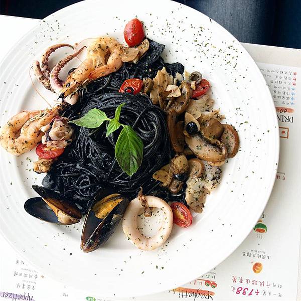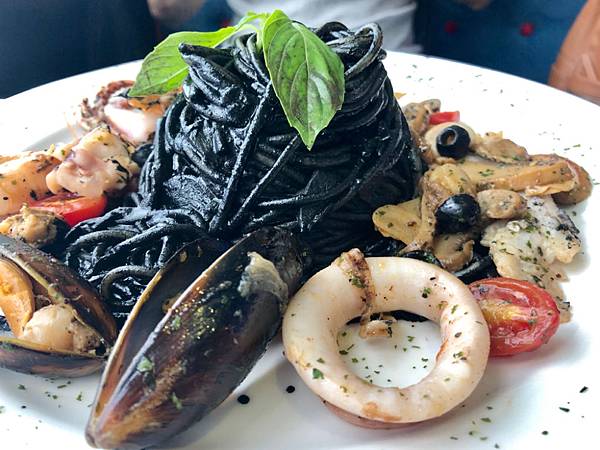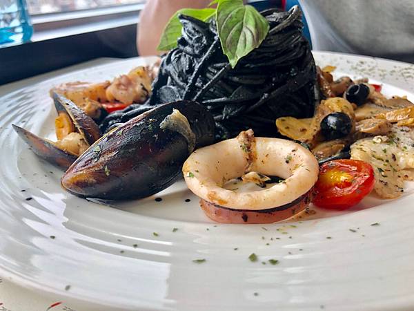 因為墨魚汁通通巴在義大利麵上,吃太多很膩,味道還不錯,