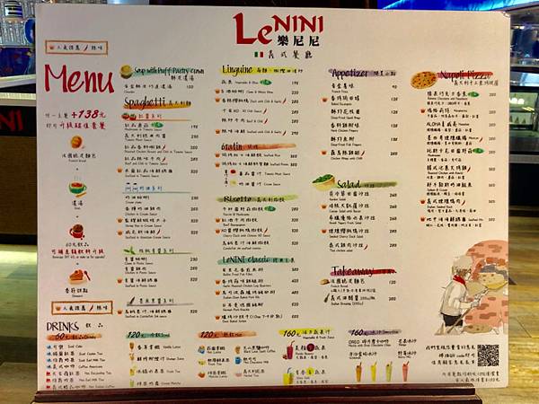 菜單,其實價位上都不是很貴,選項也很多種,有麵有飯有披薩
