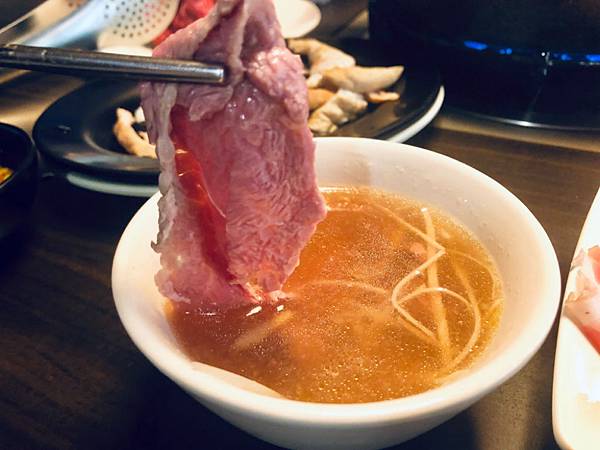 是清湯比較清淡,有加少許中藥材所以冬菜湯頭帶淡淡藥膳味適合喜歡清淡口味的人,等等可以將清湯淋上溫體牛加點薑絲