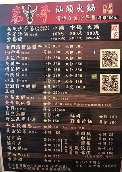 專賣汕頭沙茶火鍋,菜單如下: