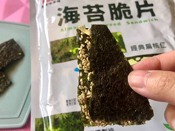 中間是有夾層,不是只有吃到海苔的香味,也有濃郁芝麻香味及堅果香