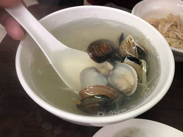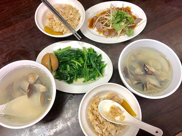 通常我們是吃,雞肉飯,嘴邊肉,燙青菜,蛤仔湯