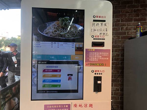 告知店家後,涼麵只要在販賣機上點一碗即可,