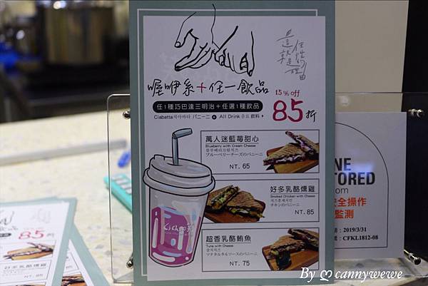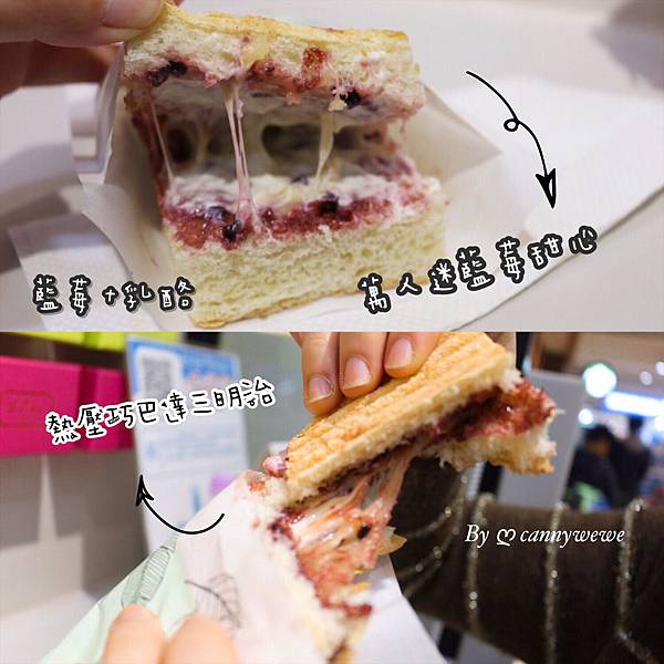 新品的熱壓巧巴達三明治,熱熱的乳酪會牽絲,這個很可以,和藍莓意外的合拍