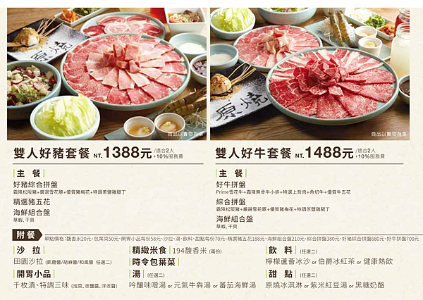 我們選了倒數第二價位的套餐,雙人好牛套餐$1488,多了一百可以吃牛肉,就選它了,