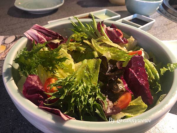沙拉盤的部分,是使用日式的油醋醬,也是我吃過很清爽味道很喜歡的沙拉醬,