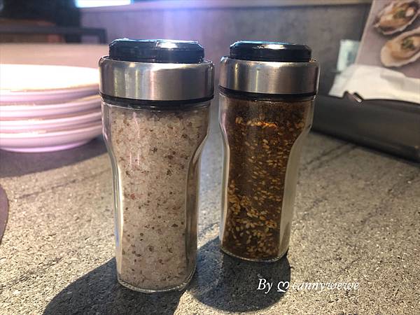 厲害的玫瑰鹽和調味料,我覺得不需要沾醬就很好吃,