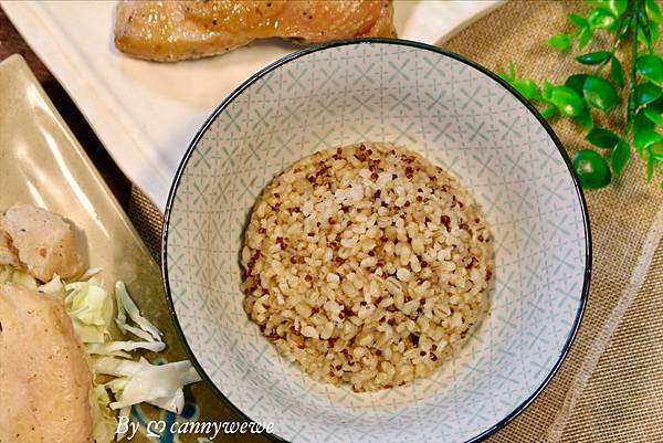 這個米飯很香,而且比吃白飯還好,裡面有紅藜,紅藜好處多多,這樣一碗什麼都有,