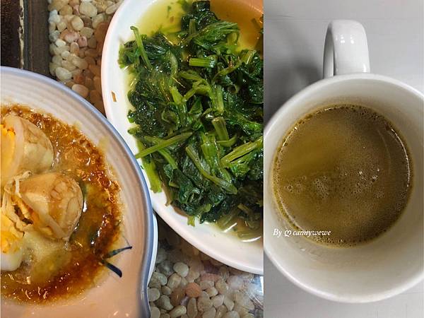 晚餐:燙菠菜+滷豬腳2塊+鴨蛋2個