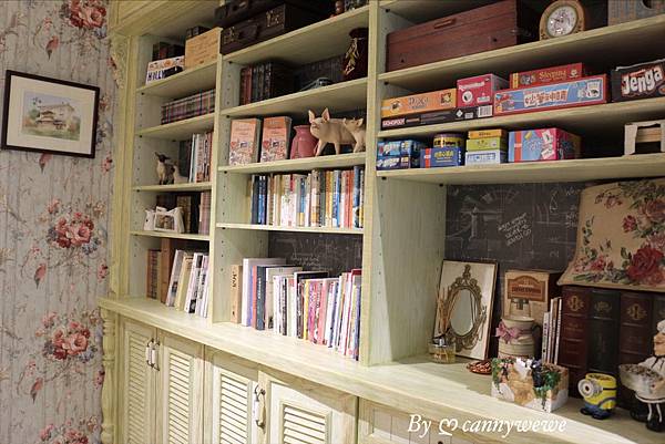 入門後的鞋櫃上方,吸引我們的目光是老闆收藏的桌游,還有書籍,都可以在退房前自行取用,
