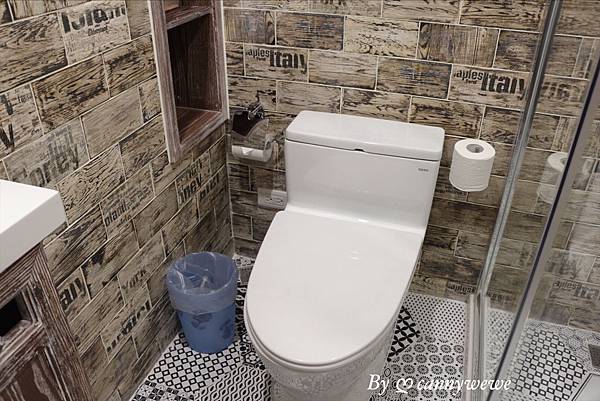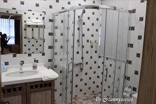 浴室也呈現一整體的歐風設計,淋浴空間和廁間是分開的,