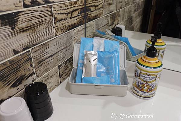 老闆還特地準備南法•香頌-歐巴拉朵系列天然洗髮精/沐浴乳,相當高檔,盥洗用具是每一間都有喔!