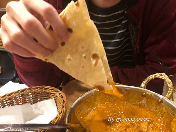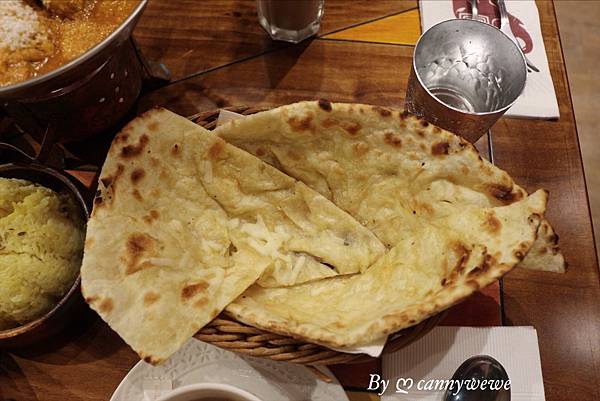烤餅很Q,軟軟的香味十足,起士烤餅 搭配重頭戲咖喱更是一絕,