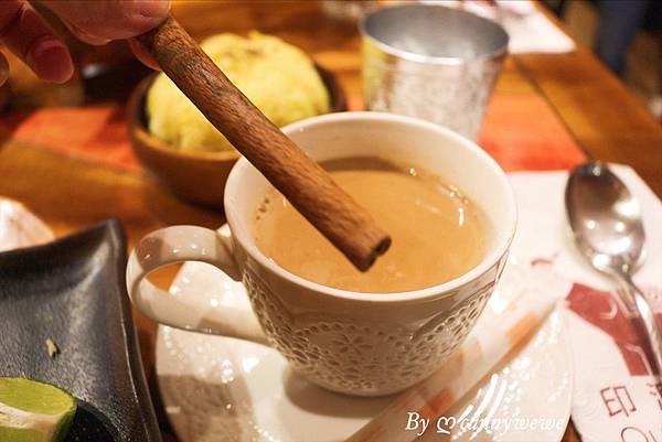 香料奶茶,還有附一根肉桂棒,可以用來攪拌,多了肉桂香,