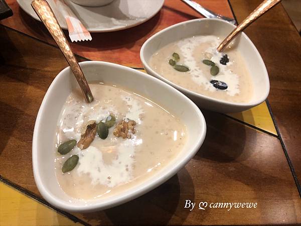 甜點香料米布丁,有椰奶的味道,吃很來稠稠的,有米飯,但是是甜品,比較類似我們的椰奶西米露的感覺
