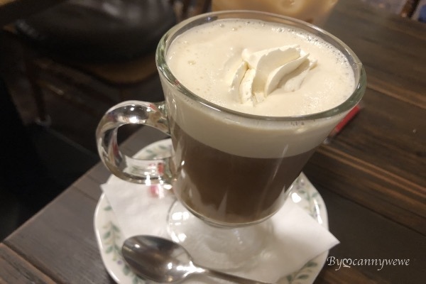 因為是熱的在我拍照得同時,鮮奶油一直往下墜,與咖啡融為一體
