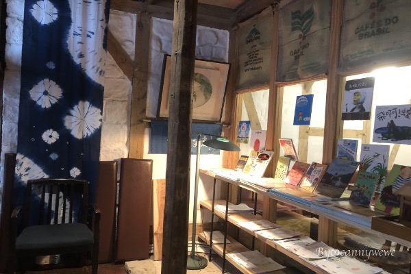 聽不到門後的音樂,營造出巷弄間靜靜的感覺,外面還擺著許多的童書,